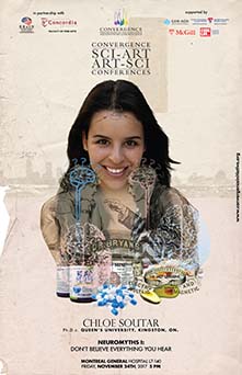 Chloe Soutar is a PhD candidate working in Dr. Hans Dringenberg’s lab at the Centre for Neuroscience Studies at Queen’s University. Her research centres on the role of estradiol as a modulator of synaptic plasticity and learning in the mammalian brain. The Convergence Sci-Art/Art-Sci Conferences series focuses on the crossover between science, arts and communication. The talks cover such subjects as the influence of media on modern science, the public perception of the scientific method, popular neuroscience misconceptions, the influence of architecture and biology on the medical practice, and science-immersed artistic practice. Convergence, Perceptions of Neuroscience is an independent initiative developed in partnership with the Brain Repair and Integrative Neuroscience (BRaIN) Program of the Research Institute of the McGill University Health Centre (RI-MUHC), and Concordia University’s Faculty of Fine Arts. Convergence is supported by the Canadian Association for Neuroscience, McGill University, and the Montreal General Hospital Foundation. |