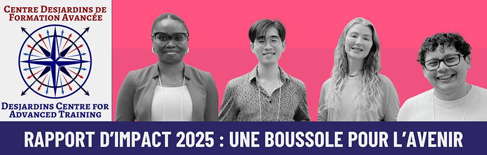 « Le Centre Desjardins de formation avancée (CDFA) agit comme une boussole — et non comme une carte routière, explique Emily Bell, Ph. D., directrice adjointe du CDFA. Nous aidons les stagiaires à s'y retrouver dans l'incertitude, à explorer des possibilités et à tracer la voie à suivre, en se fondant sur leurs propres forces et valeurs. »