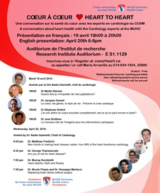 - A conversation about heart health with cardiology experts at the MUHC (April 19-20, 2016)