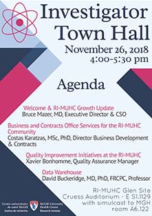 Where: At the Research Institute of the McGill University Health Centre (RI-MUHC) Glen Site, Drs Sylvia & Richard Cruess Amphitheatre, E.S1.1129, 1001 Decarie Boulevard, Montreal, Quebec H4A 3J1 with simulcast to the Montreal General Hospital, room A6.122, 1650 Cedar Avenue, Montreal, Quebec, H3G 1A4 |