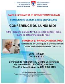 Où : L'Institut de recherche du Centre universitaire de santé McGill (CUSM), site Glen, à l'auditorium de l'IR, E.S1-1129, 1001 boulevard Décarie, Montréal, Québec H4A 3J1