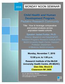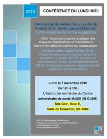 Conférencière invitée : ISABEL FORTIER Ph.D., Directrice des programmes de recherche Maelstrom et DataSHaPER, L’Institut de recherche du Centre universitaire de santé McGill, Professeure adjointe, département de médecine, Université McGill