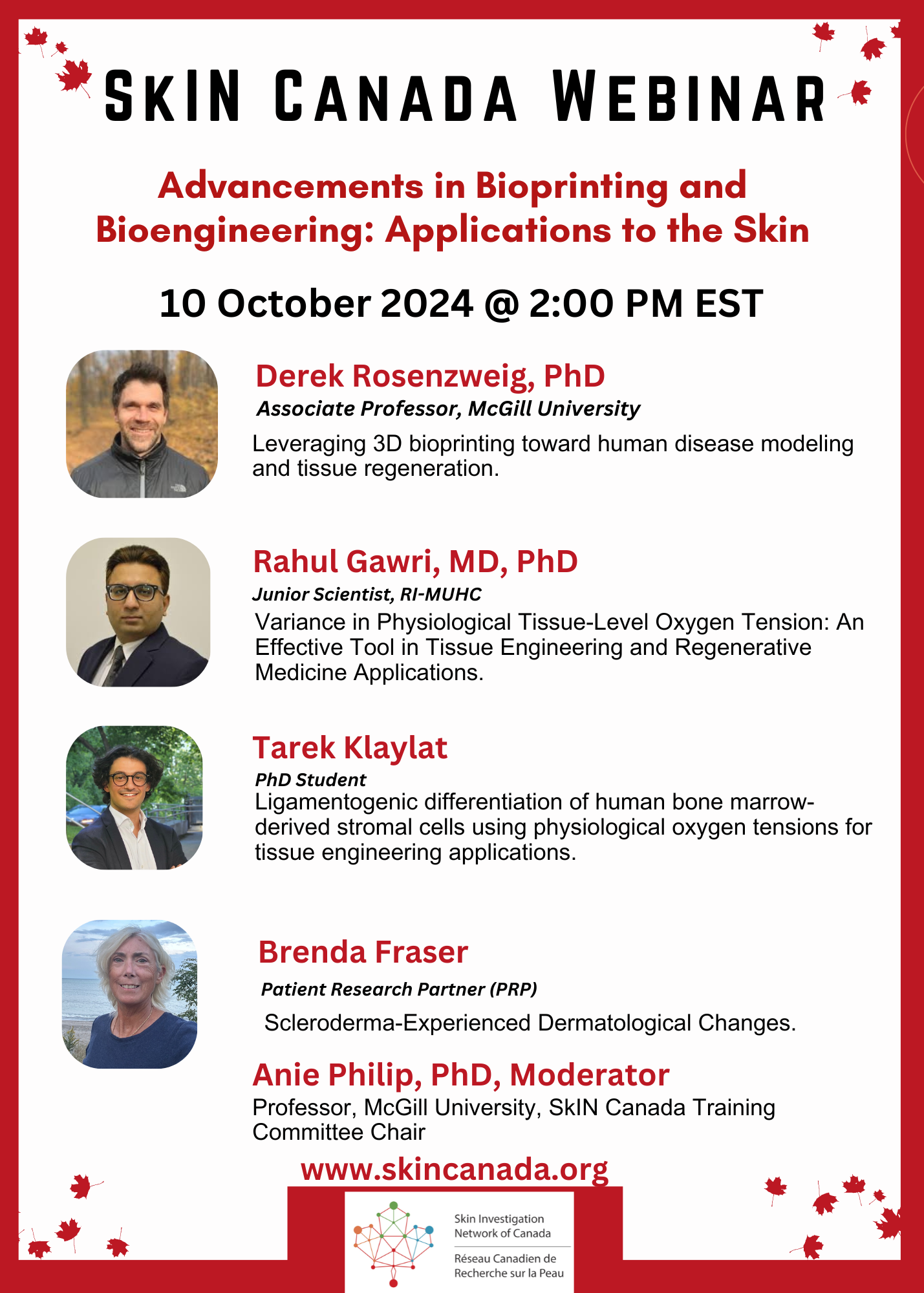 - SkIN Canada Trainee Webinar: Advancements in Bioprinting and Bioengineering: Applications to the Skin