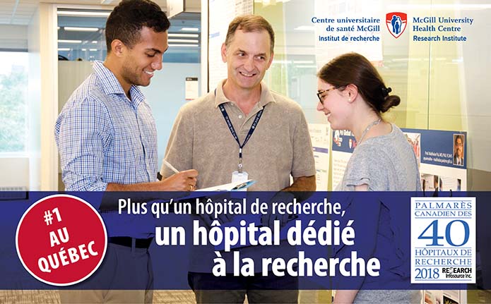 Le Centre universitaire de santé McGill (CUSM) se classe en haut de la liste du prestigieux palmarès des 40 principaux hôpitaux de recherche au Canada dévoilé aujourd’hui par Research Infosource Inc.