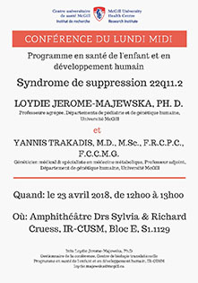 Professeure agrégée, Département de pédiatrie et de génétique humaine, Université McGill et YANNIS TRAKADIS, M.D., M.Sc., F.R.C.P.C., F.C.C.M.G., Généticien médical & spécialiste en médecine métabolique, Professeur adjoint, Département de génétique humaine, Université McGill