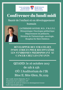 Conférencière invitée : CATHERINE GOUDIE, M.D., F.R.C.P.C.