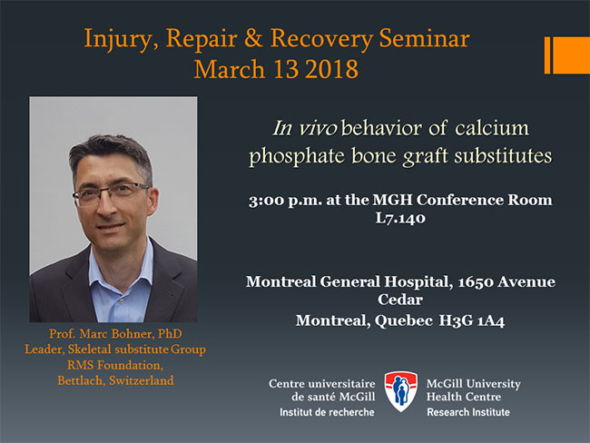 Conférencier : Dr Marc Bohner, Directeur du groupe Skeletal Substitute, Fondation RMS, Bettlach, Suisse