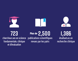 *Les fondations du CUSM comprennent : la Fondation de l’Hôpital général de Montréal, la Fondation du Centre universitaire de santé McGill, la Fondation de l’Hôpital de Montréal pour enfants, la Fondation du cancer des Cèdres et les Auxiliaires de l’Hôpital général de Montréal. Leurs contributions précieuses à la recherche sont soulignées dans la section de ce rapport : « Votre appui » .
